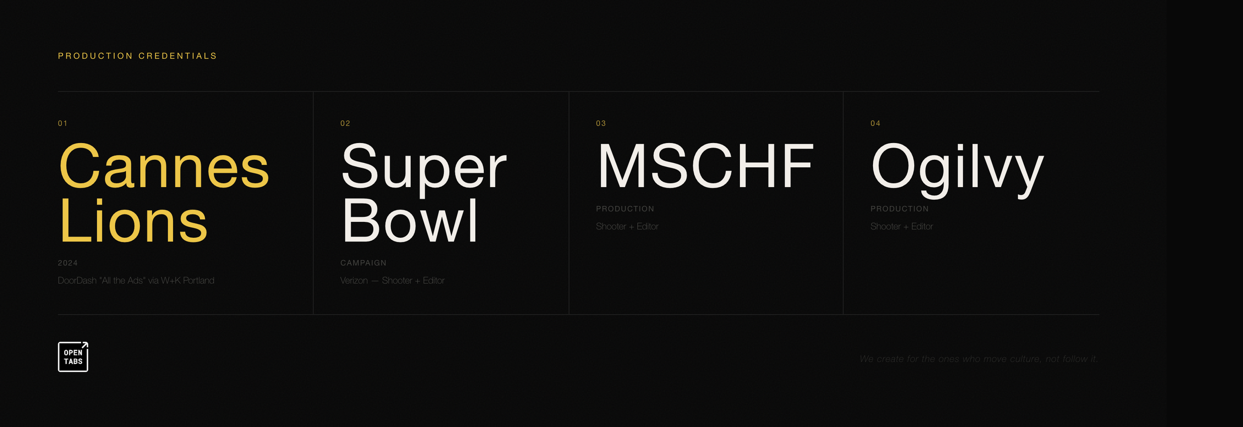 Open Tabs is a social-first content agency out of Portland. We create for the ones who move culture, not follow it."